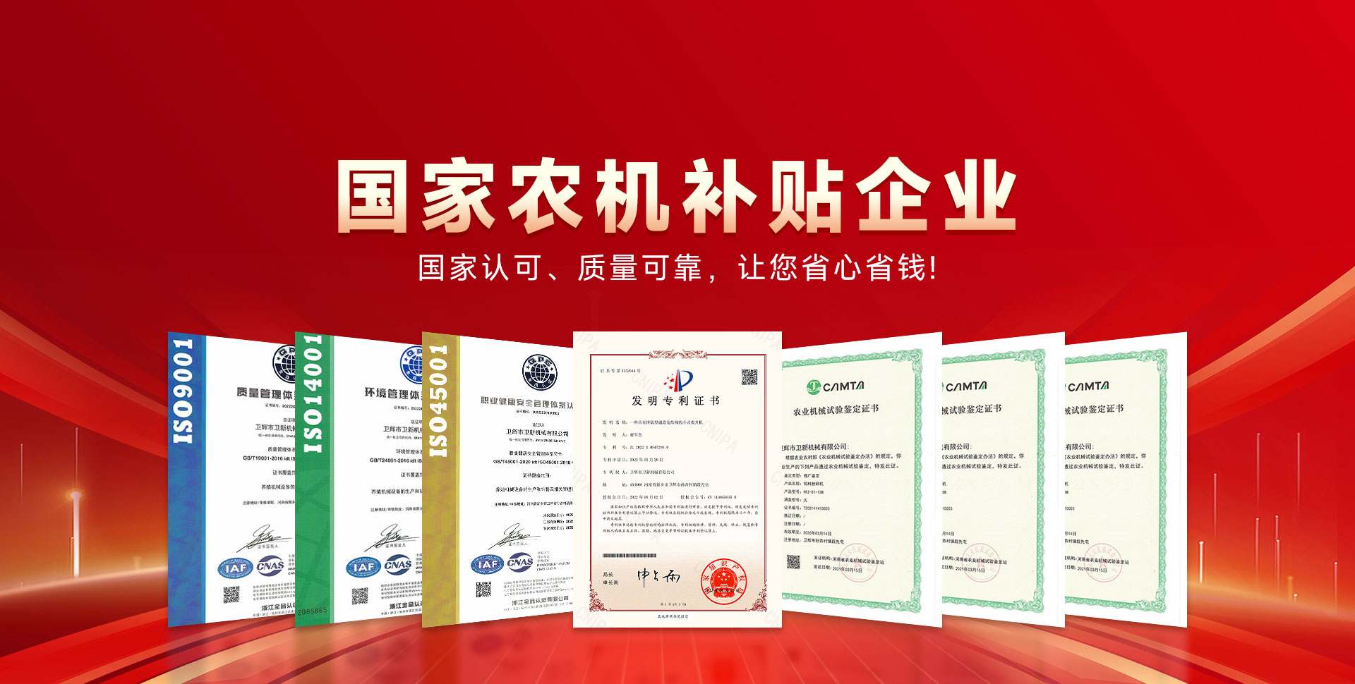 中國 河南衛輝市衛新機械有限公司坐落在中原歷史名城衛輝市,是一家集養殖機械產品研發、制造、銷售于一體的多元化高新科技公司。公司注冊資金500萬元、現有員工100余人,我們以國際企業為標準,高起點;高標準的從事養殖機械產品的研究與推廣。產品曾多次獲得上級產品質量獎,目前產品暢銷三十多個省市自治區,享有良好的市場榮譽,贏得了用戶的好評?! 」臼冀K堅持以嚴格的管理制度,保證高質量的產品服務用戶。有品質才有市場,有改善才有進步。我們相信,提供更好的產品,才是回報客戶更好的辦法?! ?019年我公司被定為河南省農機購置補貼企業。同年,我公司與北京機械研究院共同起草了粉碎機的三項國家標準和行業標準。2010年、2012年、2013年我公司被選為農機補貼企業。  我公司是重合同、守信用單位,我們將以更好的產品質量、優惠的價格、良好的售后,竭誠為用戶服務。